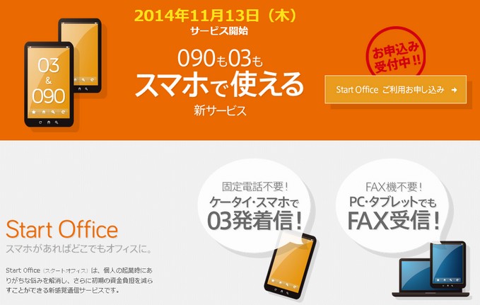スマホで03発着信、固定電話不要!営業時間設定可能なスタートオフィス
